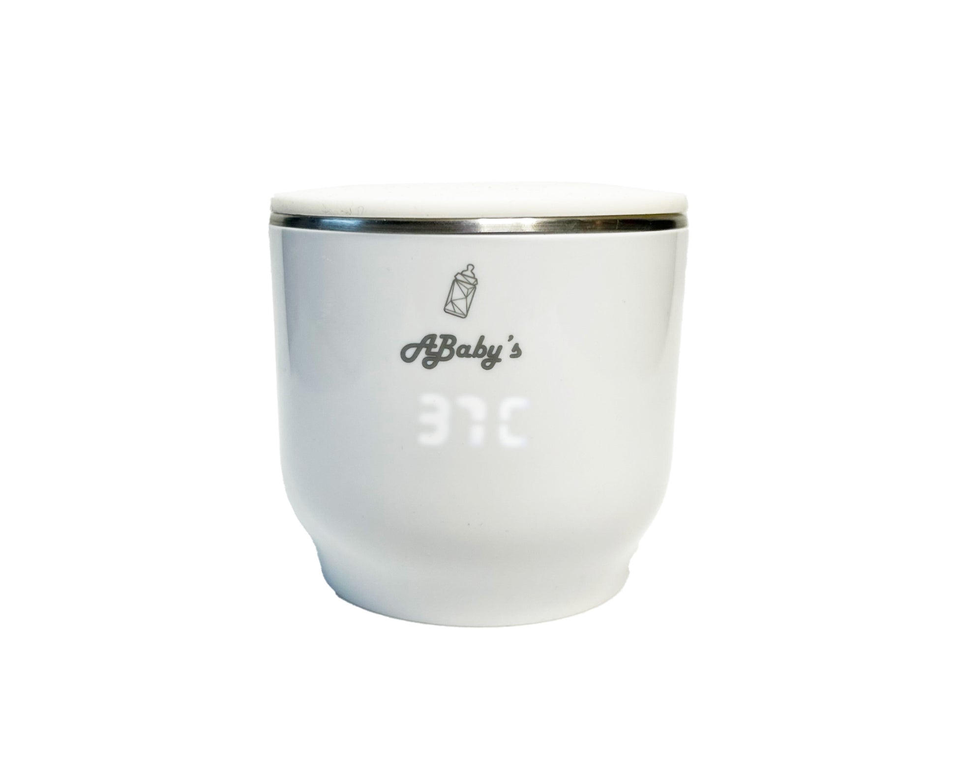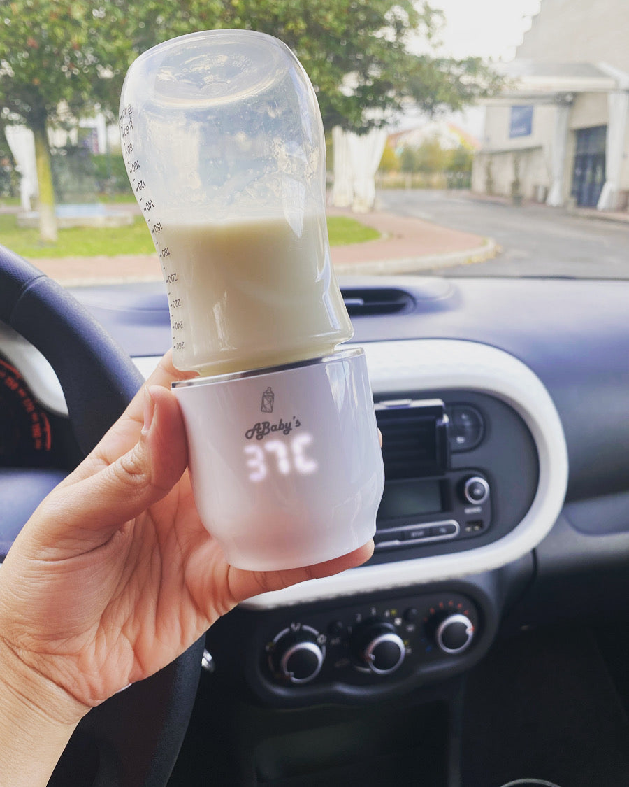 Le Chauffe-biberon Portable et Intelligent Mini ABaby's réchauffe le biberon de bébé à la même température que le lait maternel, soit 37°C, une température idéale pour préserver le confort digestif de bébé.
